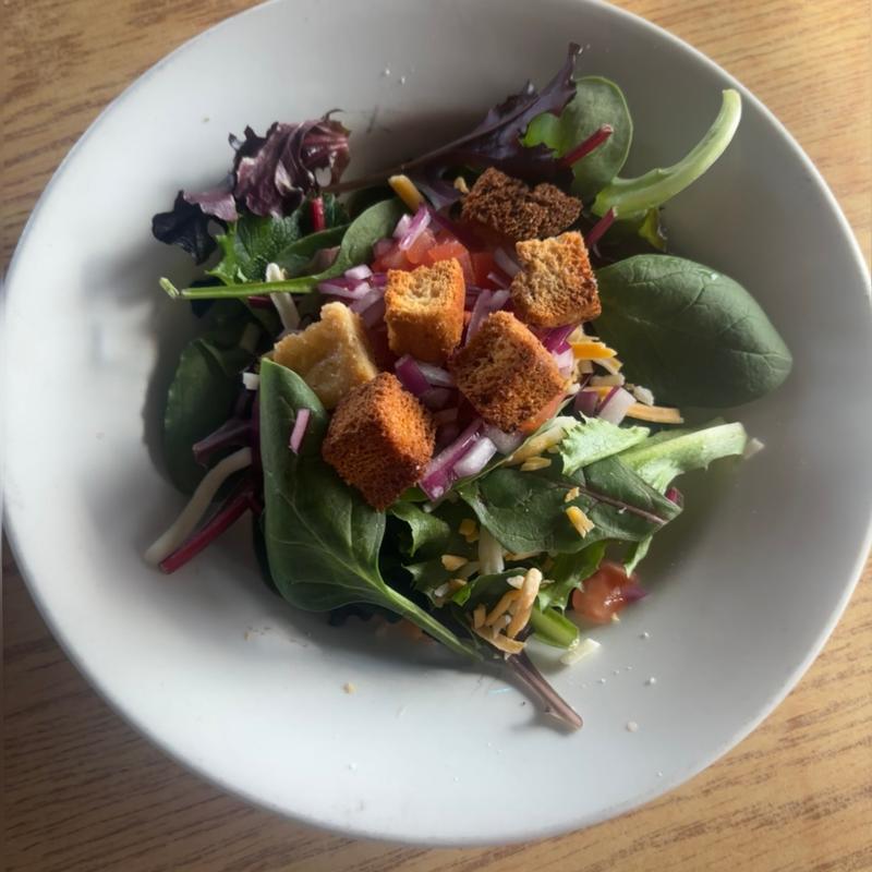 Salad mix with onions tomato, shredded cheese, and croutons with your choice of dressing.